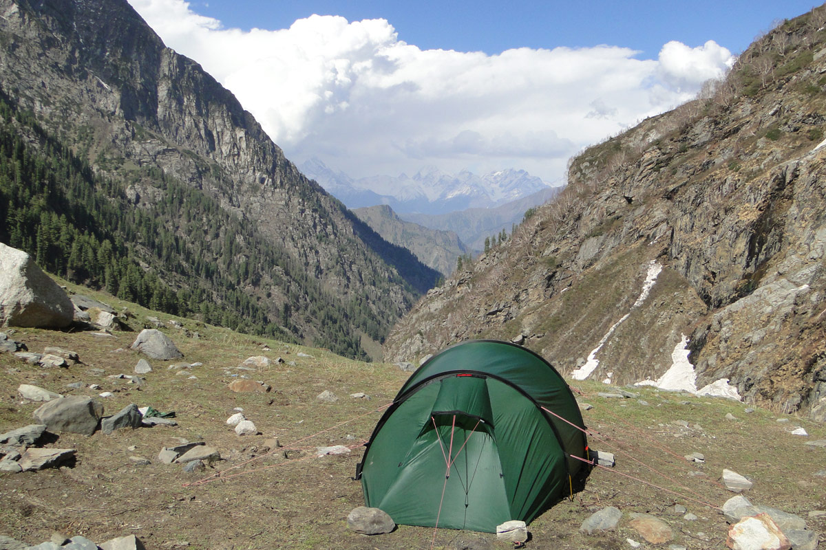 On this day we began early morning, as it will be a big day. After an early Breakfast we Start our hike to Indrahar. This difficult trek will roughly take 4-5 hours to reach on the Indrahar top . It is long exhausting yet the most rewarding part of the trek. Depending on the time of year there may be ice, snow or rocky path on the last stretch to the pass. At the summit plunge yourself in the unbelievable view of Pir-Panjal and Manimahesh Kailash. As the day progresses the weather becomes unpredictable, so after a small halt at the pass, we begin descending to Chatta Paro. Overnight Camping and dinner at Chatta Paro.